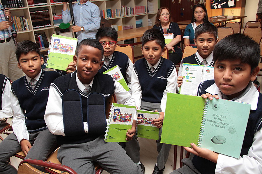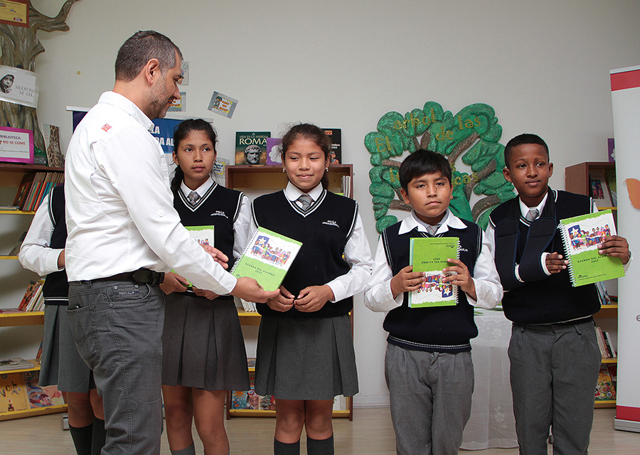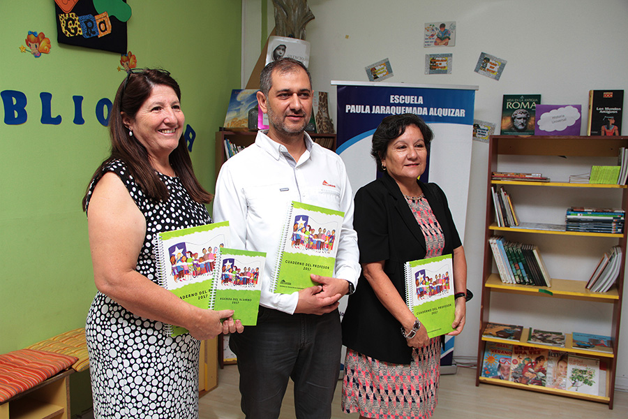 En ceremonia realizada en la Escuela Paula Jaraquemada de Iquique, se realizó la entrega simbólica de la Agenda del Alumno, Cuaderno del Profesor y calendarios (pared y escritorio). La actividad contó con la presencia de la directora del establecimiento Alicia González y Jaime Arenas, director ejecutivo de Fundación Educacional Collahuasi.