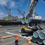 En ese contexto, una nueva transferencia de carga de 2 mil 205 tuberías se efectuó a través de Iquique Terminal Internacional (ITI), operación logística que se suma a la llegada de 2 mil 195 tuberías en abril pasado, completando así más de 4 mil tuberías de 15 metros de largo que por primera vez fueron desembarcadas y movilizadas dentro de la Región de Tarapacá.