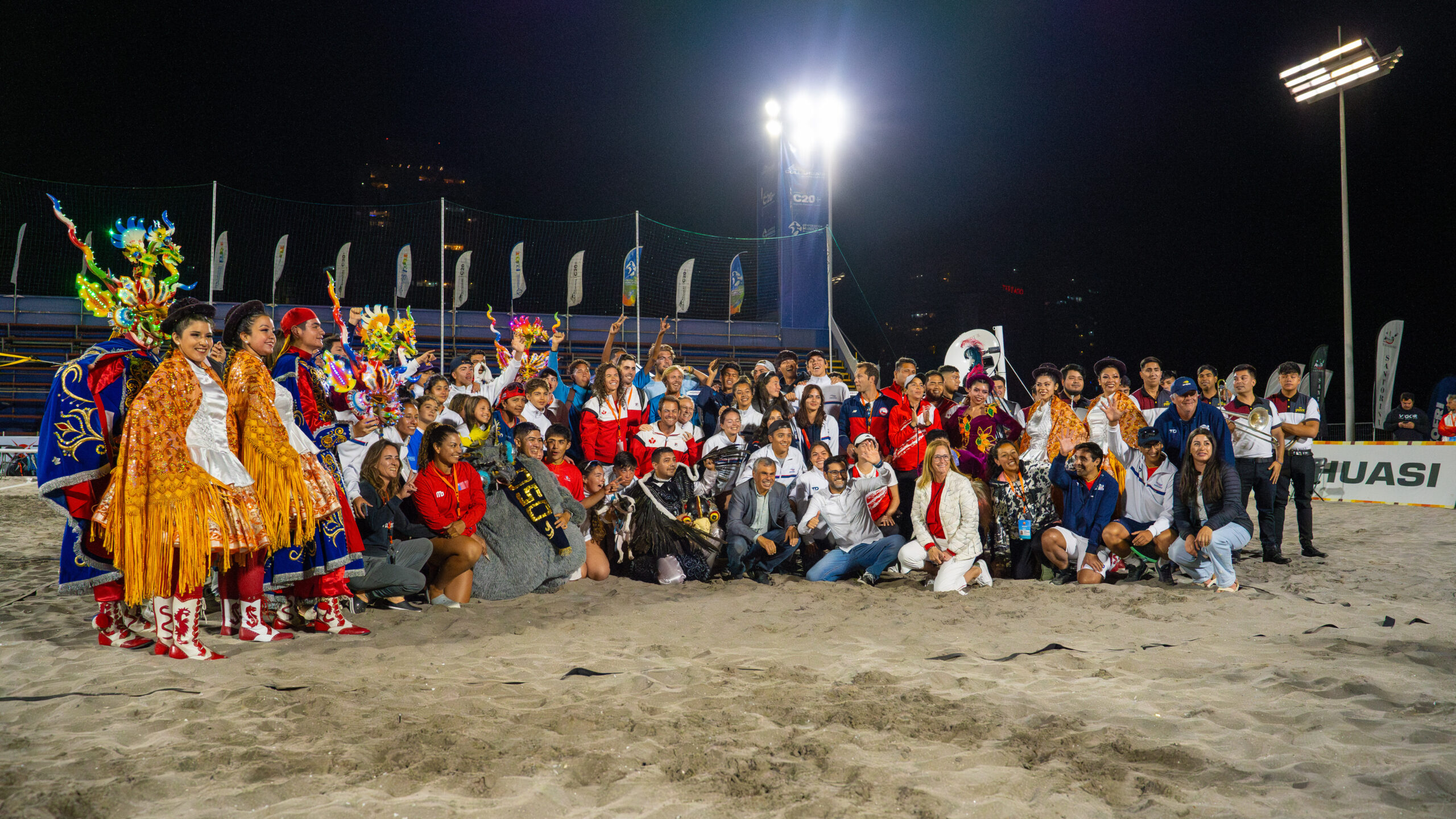 Una festiva jornada se vivió anoche en el Arena Cavancha, instancia que marcó la ceremonia inaugural del torneo internacional “Pan American Beach Tennis Championships 2023”. En la oportunidad las autoridades encabezadas por el alcalde de Iquique Mauricio Soria, junto a ejecutivos de Collahuasi, dieron la bienvenida a los 270 deportistas que integran los 16 equipos provenientes de Argentina, Aruba, Brasil, Bolivia, Canadá, Colombia, Curazao, Ecuador, Estados Unidos, México, Paraguay, Perú, Puerto Rico, Uruguay, Venezuela y Chile.