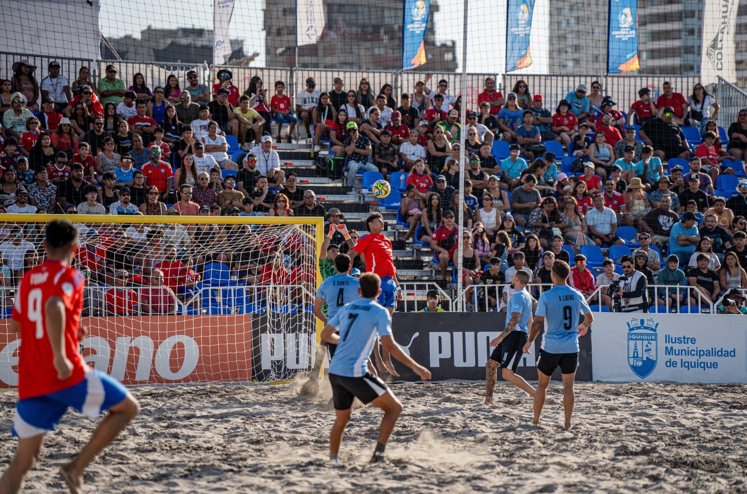 Con la presencia del ministro del Deporte, Jaime Pizarro, junto al gobernador regional de Tarapacá, José Miguel Carvajal, se disputó el encuentro entre Chile y Uruguay correspondiente a la cuarta fecha de la Copa América de Fútbol Playa 2025 en Iquique.