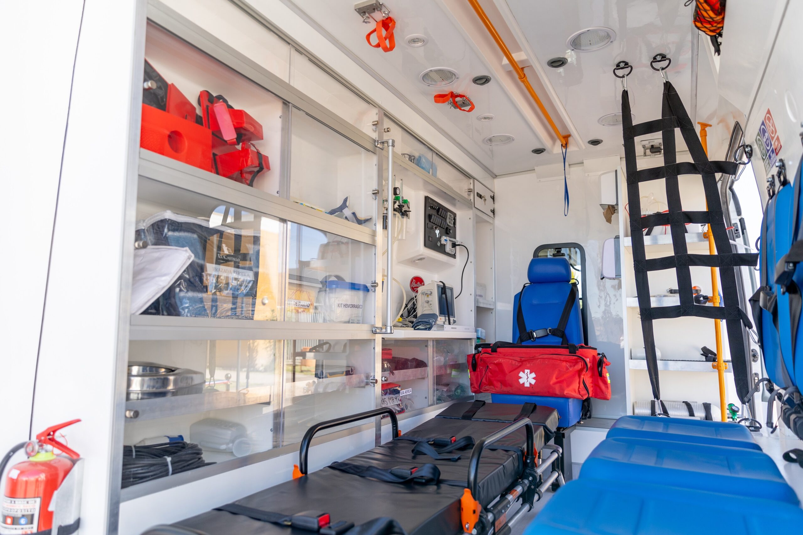 El vehículo asistencial AEA está equipado con todo el soporte necesario en equipamiento médico, medicinas y otros implementos, con el propósito de brindar una atención profesional en el lugar del incidente o durante el traslado hacia un centro hospitalario.