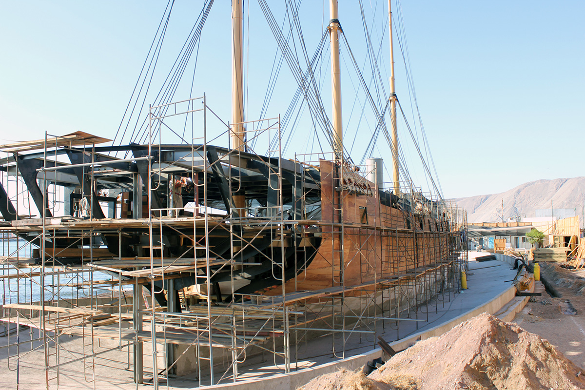 Para esta obra, se formó un equipo experto en las áreas ingeniería y construcción naval, maniobras y museología a través de un trabajo coordinado entre Collahuasi, la Corporación Patrimonio Marítimo de Chile, Armada de Chile, Gobierno Regional y el municipio de Iquique. La construcción de la corbeta estuvo a cargo de Astilleros Marco Chilena, empresa que tomó como referencia registros históricos, libros y fotografías de época, que permitieron diseñar este espacio con altos estándares internacionales.