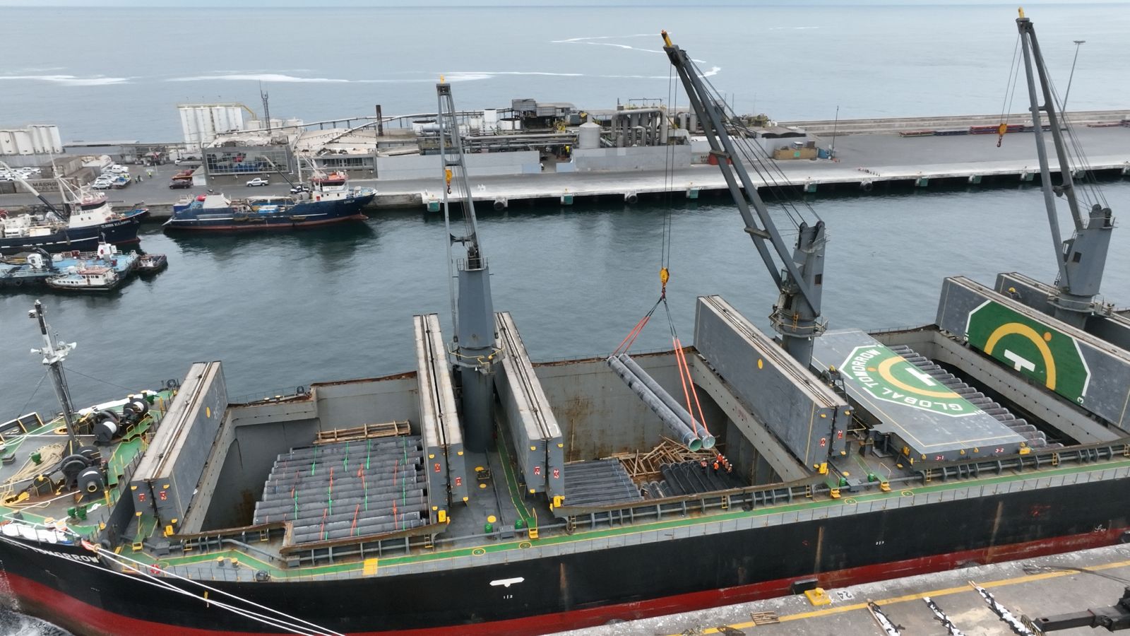 According to ITI’s Operations Manager, Cristopher López, “This process involved the movement of more than 94,000 tons of cargo from five vessels. It challenged us logistically, not only in vessel servicing operations, but also in the distribution of cargo within the terminal, in our storage areas, and in establishing an additional storage and distribution zone in Alto Hospicio. Once unloaded at the port, we transported the pipes using trucks, performing more than 5,500 trips from Iquique to Alto Hospicio.”