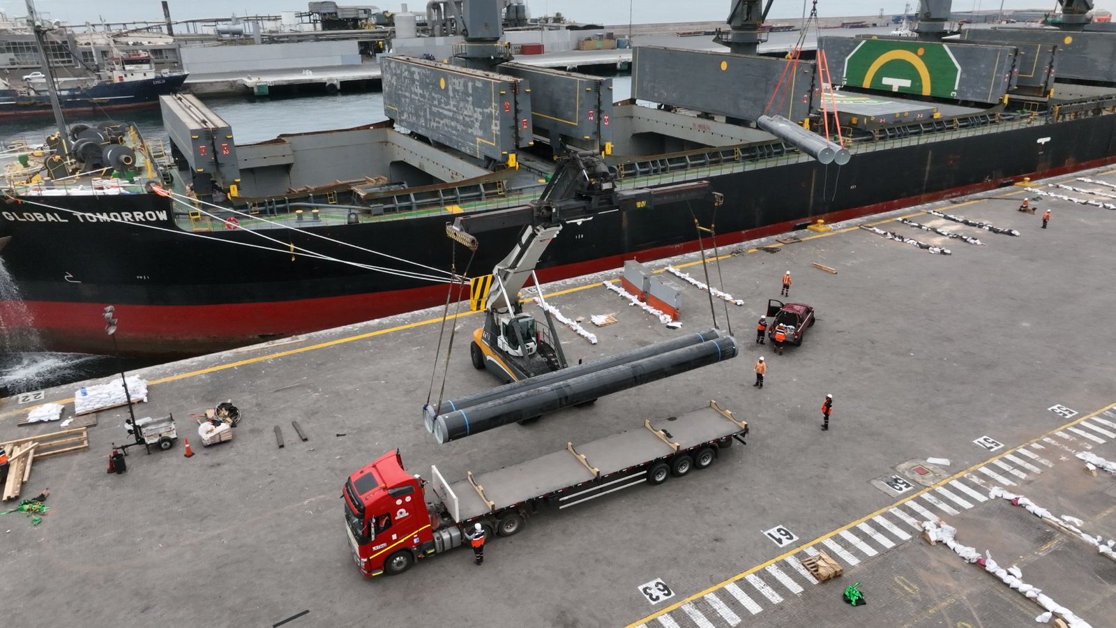 Iquique Terminal Internacional (ITI) described the handling of more than sixteen thousand five hundred pipes arriving from Greece—destined for Collahuasi’s C20+ Project—as one of the most important and challenging cargo operations in recent years. The operation required a complex logistics plan both inside and outside the port to efficiently support this major regional investment.