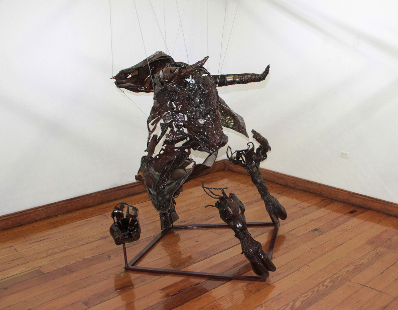 La totalidad de las muestras de Raúl Soza están confeccionadas por material metálico desechado, como puertas, marcos de ventanas, estufas, fierro de construcción, engranajes y pernos. Con esta expresión, Soza se hace presente por segunda en vez en la Sala de Artes Casa Collahuasi. Las dimensiones de los toros superan el metro y medio de altura y el proyecto de construcción tardó más de dos años.
