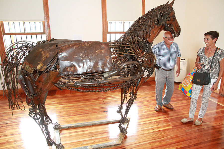 Caballos en tamaño real y en base a fierro de construcción y metal reciclado, son posibles de apreciar hasta el 31 de enero en sala de arte Casa Collahuasi Iquique.
