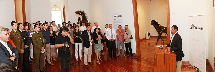 En ceremonia de inauguración de la muestra Luciano Malhue, gerente de Relaciones con la Comunidad de Collahuasi destacó la exposición, resaltando la propuesta innovadora que además conlleva el concepto de dar vida a elementos que había sido desechados.