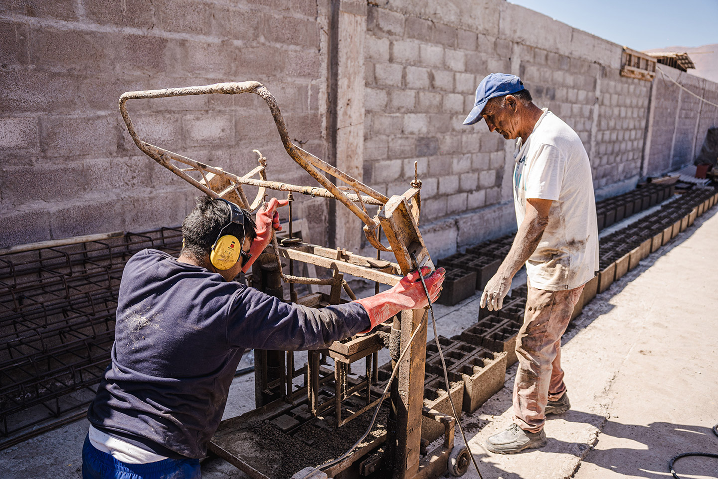 En sus inicios, la fábrica de bloquetas “Los Espejo” carecía de equipamiento, por lo que sus procesos eran rudimentarios, pero con apoyo del Programa de Desarrollo Productivo de Collahuasi aumentó su producción de 1.000 a 1.500 bloquetas, disminuyó costos operacionales e incrementó sus utilidades en más de un 50 por ciento.