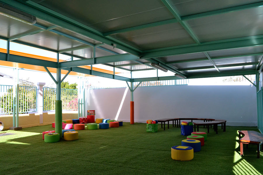 La cubierta contempla aislante térmico, permitiendo así una zona de juegos y actividades protegida climáticamente.