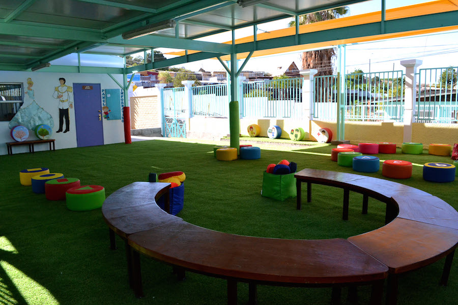 Las obras realizadas en el establecimiento consistieron en la modificación de la estructura existente como sombreadero y radier, e instalación de una cubierta de placa sandiwch de alta aislación térmica, como también una malla plástica que protegerá a los pequeños de los rayos UV. “Con todas estas modificaciones realizadas se logra un control climático del patio para los juegos de los párvulos”, dijo Arenas, quien recalcó que también se instaló pasto sintético en toda la superficie intervenida, mobiliario adecuado a escala de niños, juegos y módulos didácticos, pintura general, bodega de materiales y trabajos menores.