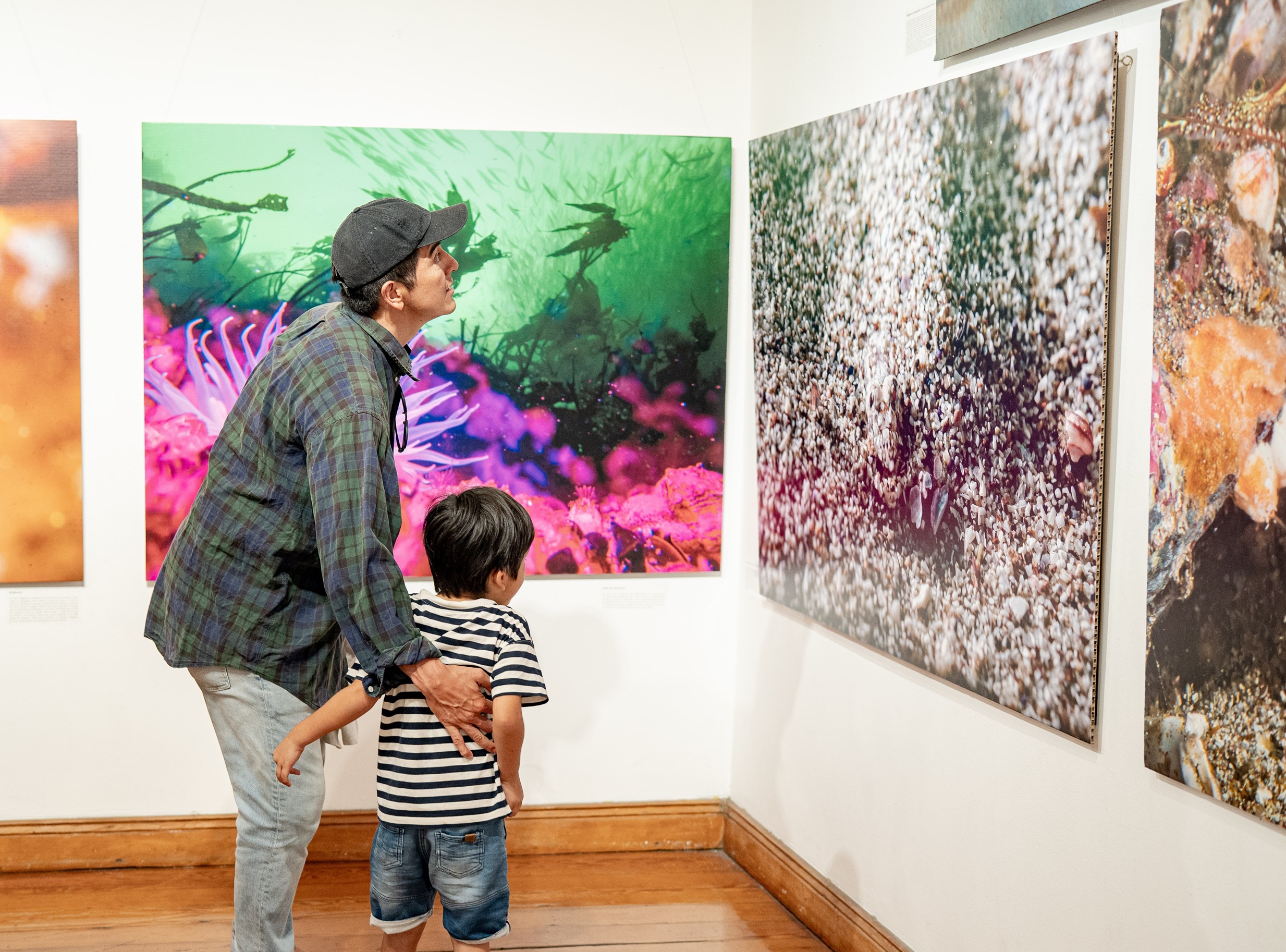 A través del trabajo fotográfico de los deportistas locales Pablo Guerrero y Alfredo Castro, socios del Club de Pesca Submarina Caramucho y ganadores del Campeonato Mundial de Fotografía y Video Submarino realizado en España en 2025, los visitantes pueden apreciar 39 imágenes submarinas que ponen en valor el patrimonio marítimo vivo de Tarapacá y de otras latitudes como las Islas Medas en el Mar Mediterráneo.