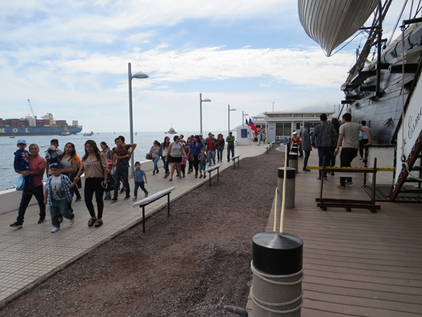 La actividad, que se desarrolló en completo orden y seguridad, se extendió entre las 10:00 y las 17:00 horas, en horario ininterrumpido, permitiendo la atención de una alta convocatoria de Iquiqueños, turistas nacionales y también extranjeros de distintas edades, quienes pudieron disfrutar de una jornada diferente, celebrar la festividad y aprender más sobre nuestra historia naval a través de un recorrido auto guiado por las distintas escenas que comprende el guión museográfico en el que se relata la vida a bordo hasta el 20 de mayo de 1879.