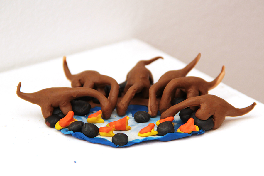 Pequeñas figuras de no más de 5 centímetros de diámetro y elaboradas en plastilina forman parte del “Mini Mundo” de Joaquín Alberico Pinela, exposición que el artista presenta en sala de arte Pica Collahuasi durante marzo y abril.