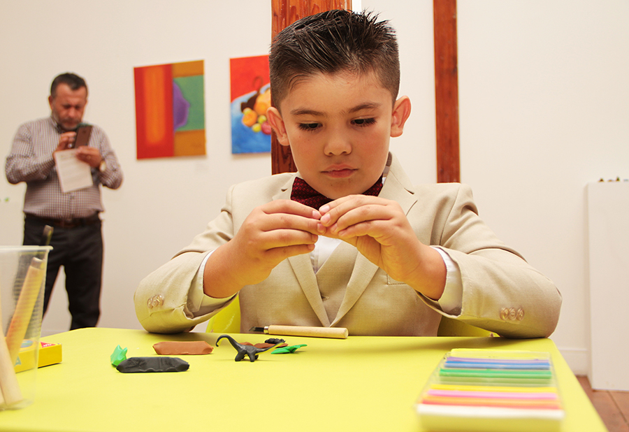 Con solo 9 años de edad (pronto a cumplir los 10 como él dice), el piqueño destaca por sus habilidades con el arte, porque la muestra que comparte en la sala Pica Collahuasi, no solo está conformada por las 100 figuras de plastilina, también se suman 8 pinturas con paisajes de su comuna o de temas que a él le gustan.