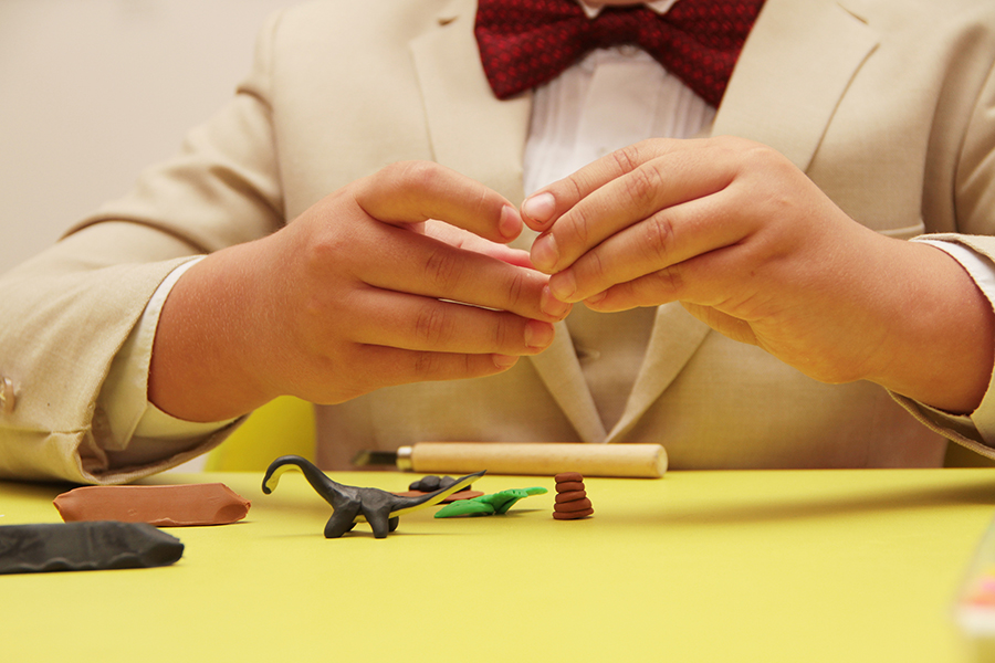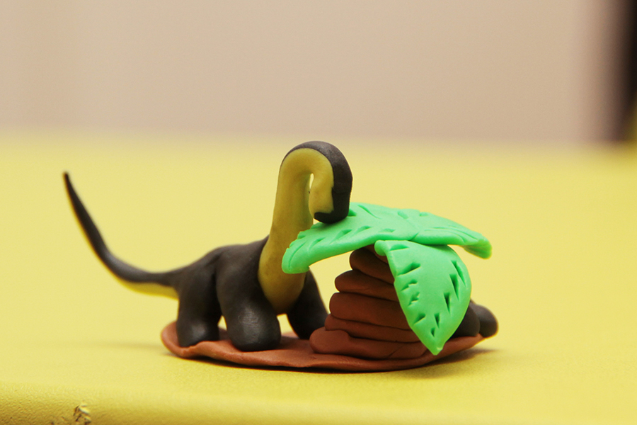 La muestra Mini Mundo está conformada por 100 figuras en plastilina, donde el 70% corresponde a dinosaurios, tema preferido de Joaquín, y el resto a figuras de juegos electrónicos que son de su gusto. En ellos demoró un mes en materializarlos y ocupó 12 cajas de material. Los cuadros le demandaron 16 días, porque a cada uno dedicó 2 días para crearlos.