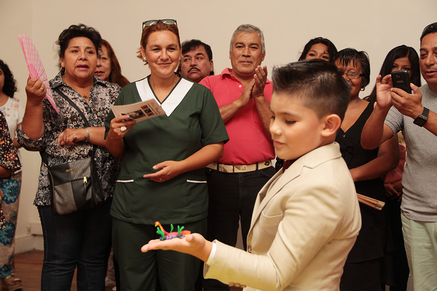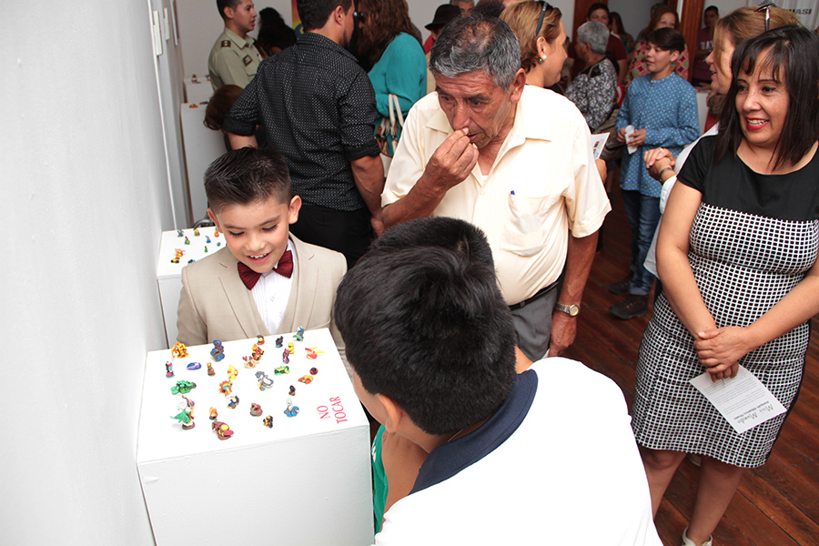 Vestido con traje y humita, Joaquín habla de manera rápida y correcta, relatando con detalle lo que hace, por qué lo hace y lo que quiere. Tiene claro que su habilidad proviene de los conocimientos traspasados por su abuela Magda Valderrama, destacada artista piqueña, a quien acompaña en su taller. Sus obras, pequeñas en tamaño pero grandes en diseño y atractivo, logran atraer la mirada de quienes visitan la sala, quienes dedican varios minutos para reconocer los detalles que el artista logra modelar.