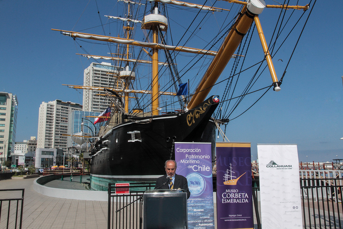 Este jueves 2 de mayo, en el Museo “Corbeta Esmeralda”, Compañía Minera Doña Inés de Collahuasi junto a la Corporación Patrimonio Marítimo de Chile, dieron a conocer los detalles del Proyecto de “Recuperación, Mejoramiento y Ampliación”, obra que ya se está ejecutando en la reproducción a escala del histórico buque del Comandante Prat anclado en Iquique.