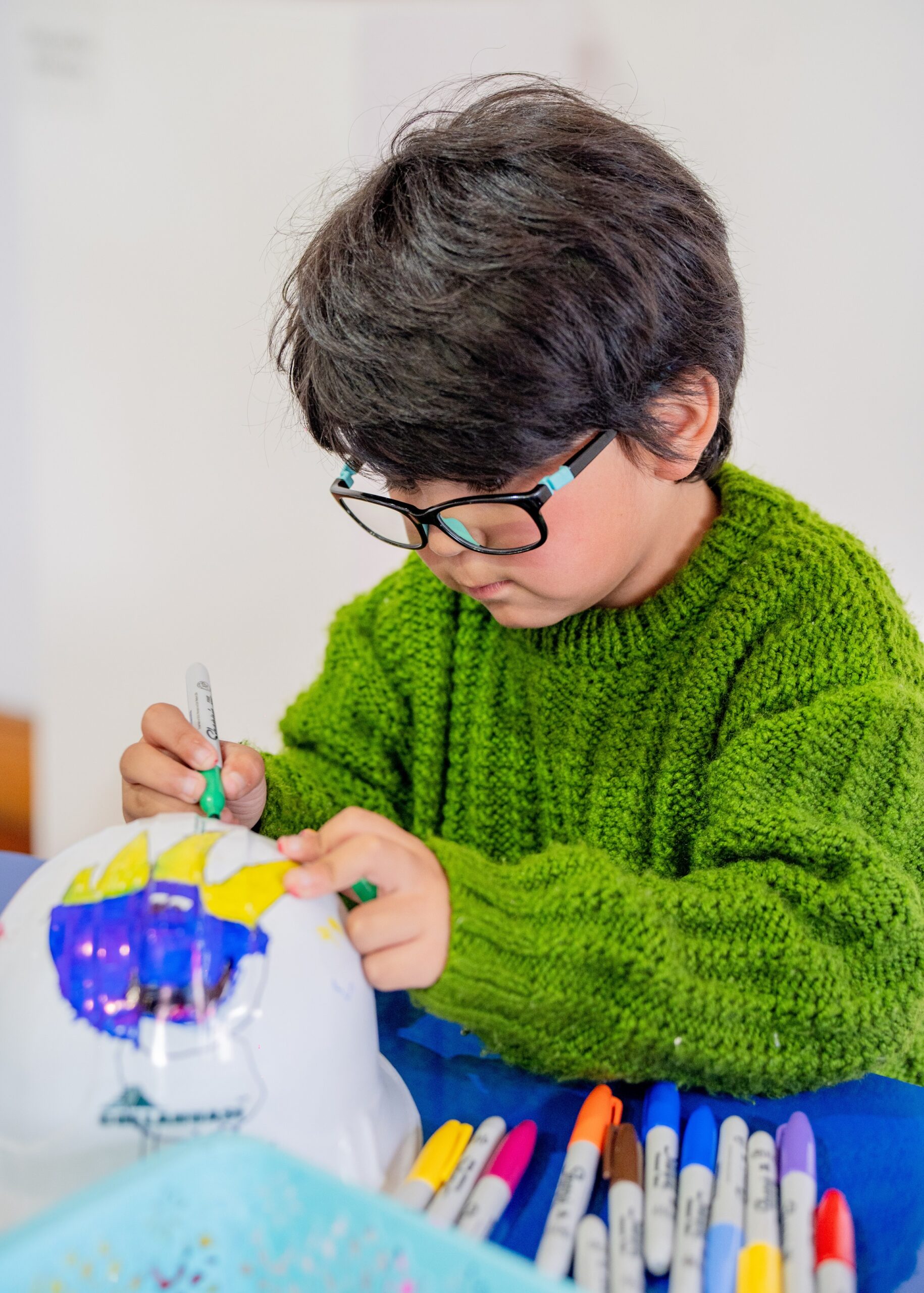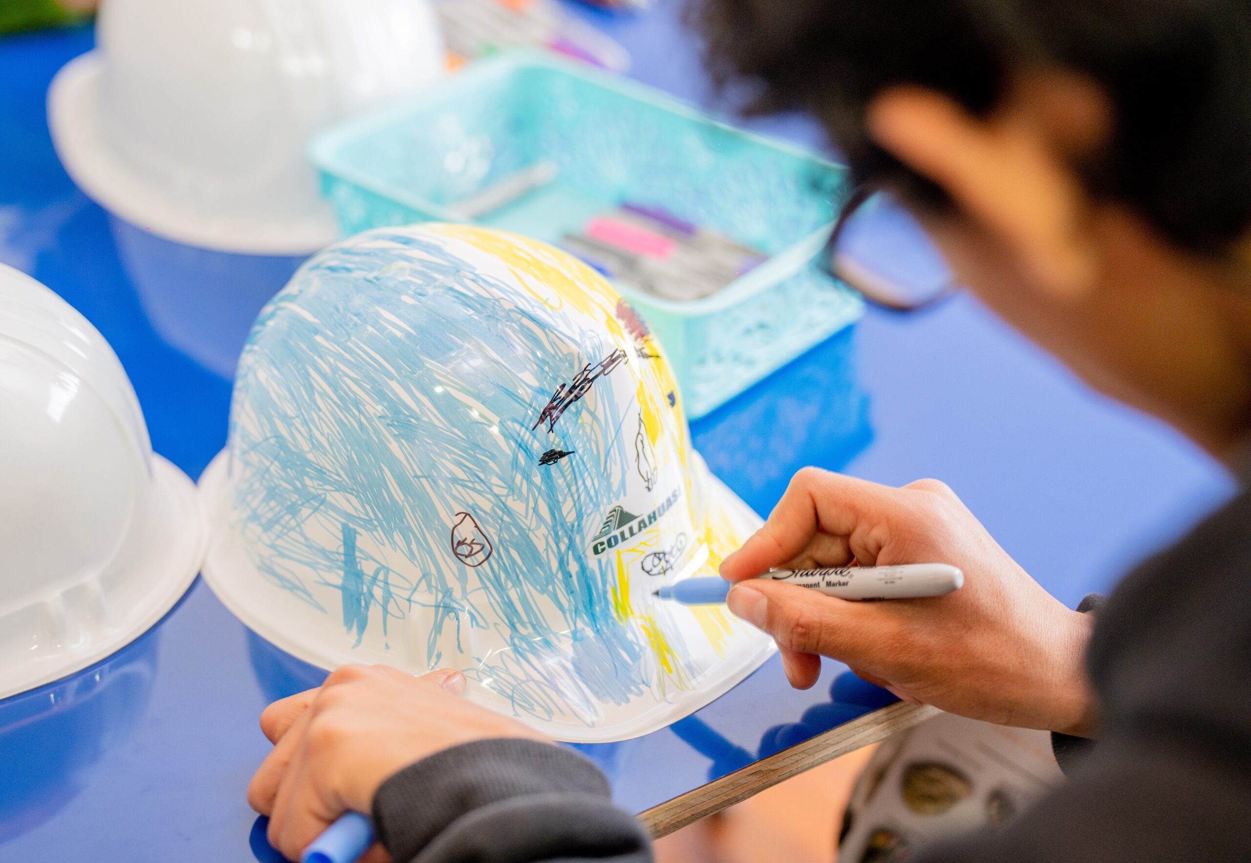 Durante la visita, los niños y jóvenes no sólo recorrieron esta exposición que incorpora el reciclaje, sino también participaron en una jornada artística, donde crearon sus propios diseños y dibujos en cascos mineros.