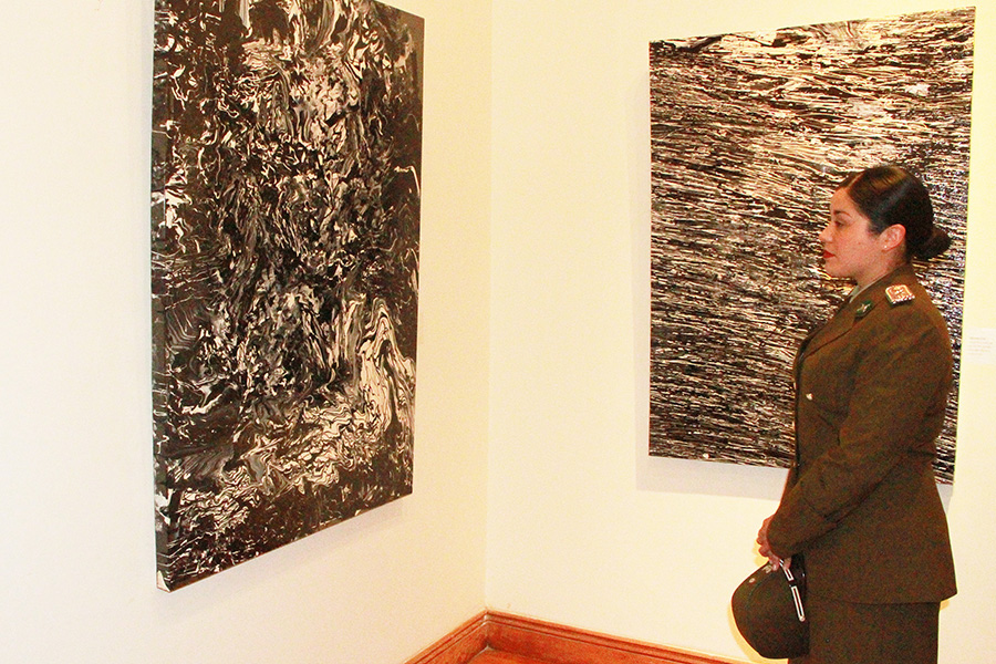 Una obra puede entregar mensajes no solo por sus diseños, colores o trazos, también lo hace a través del material utilizado. Muestra de ello es la exposición presente durante noviembre en sala de arte Casa Collahuasi, conformada por pinturas sobre plástico.