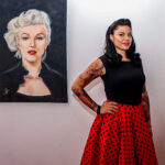 Marilyn Monroe, Amy Winehouse, Johnny Deep, Kurt Cobain, James Dean, Angelina Jolie, Freddie Mercury y David Bowie son parte de las figuras icónicas que esta artista local transformó en sus referentes, para pintar con total libertad creativa una serie de retratos que realzan aspectos particulares de la fisonomía humana y el lenguaje corporal.