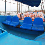 Junto con la embarcación también se entregó carro de arrastre, chalecos salvavidas, botiquín, extintor, radios de comunicación y bengala de seguridad, además de equipo compresor de buceo certificado, toldo de acero y bancos.